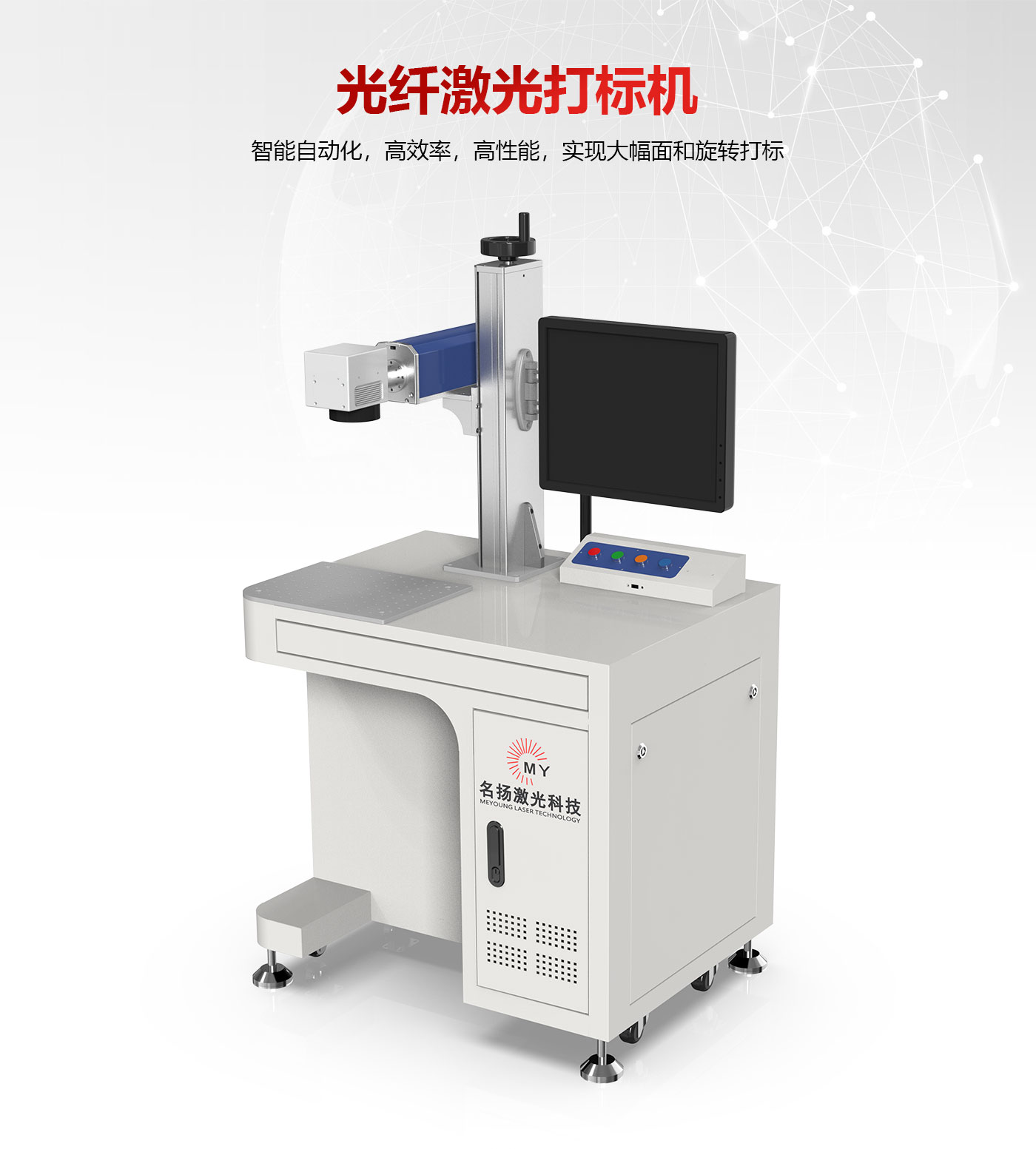? 根據要求可加裝二維工作平臺與旋轉工作頭,實現大幅面和旋轉打標