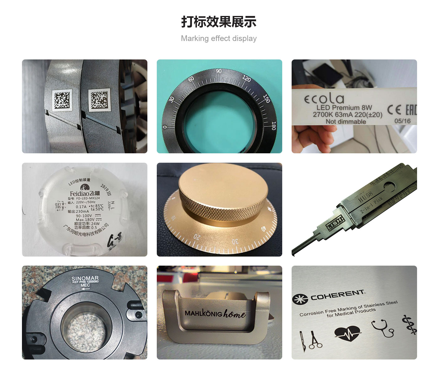 ? 標刻速度快、精密度高,可配套生產線自動打標,有助于節約高昂的人工成本